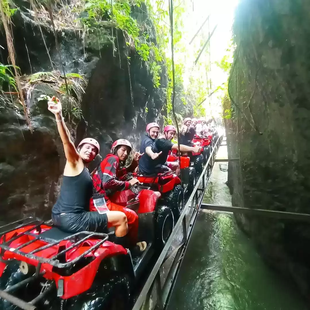 Ubud Barong Cave ATV menawarkan pengalaman berkendara melalui trek alami yang spektakuler. Anda akan menikmati suasana hutan, persawahan, jalan pedesaan, air terjun, hingga masuk ke Barong Cave yang merupakan gua asli. Trek ini memberikan petualangan aman dan seru, cocok untuk semua level termasuk pemula.